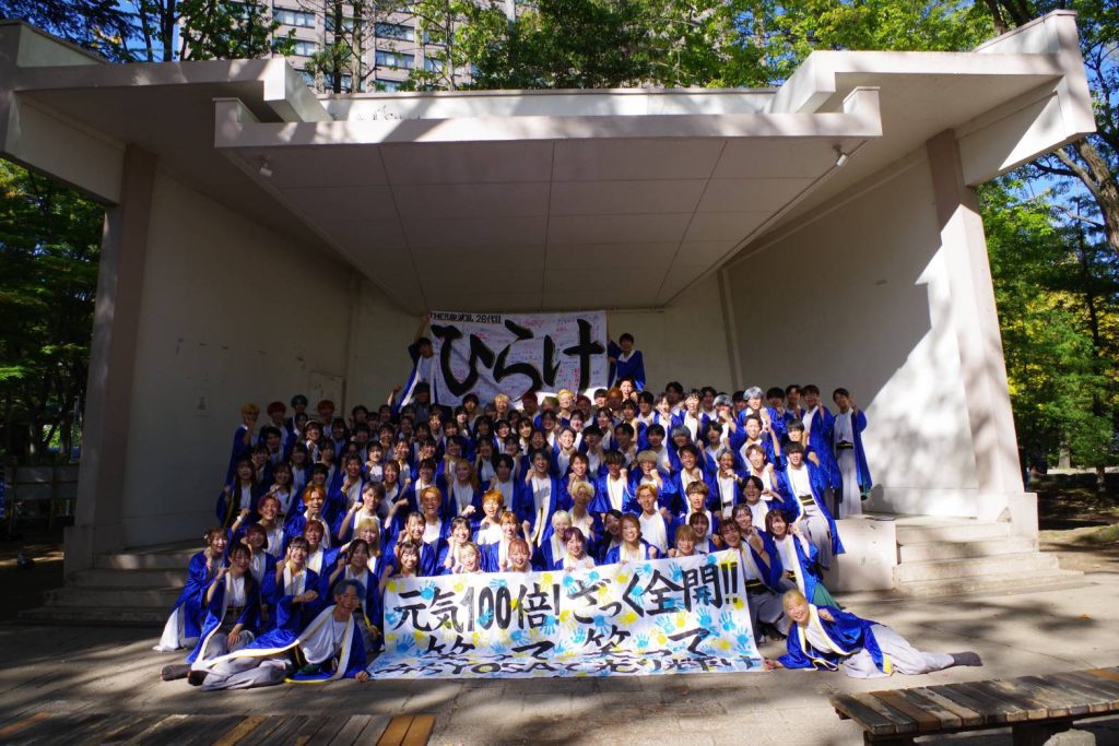 私たちは、宮城県仙台市を中心に活動する学生よさこいチームです。「みちのくYOSAKOIまつりを盛り上げる」ことを目的に活動し、今年で28年目を迎えます。その想いを胸に、北は北海道、南は名古屋まで全国各地のお祭りへ、若きエネルギーとよさこいへの情熱を携えて参加しています。